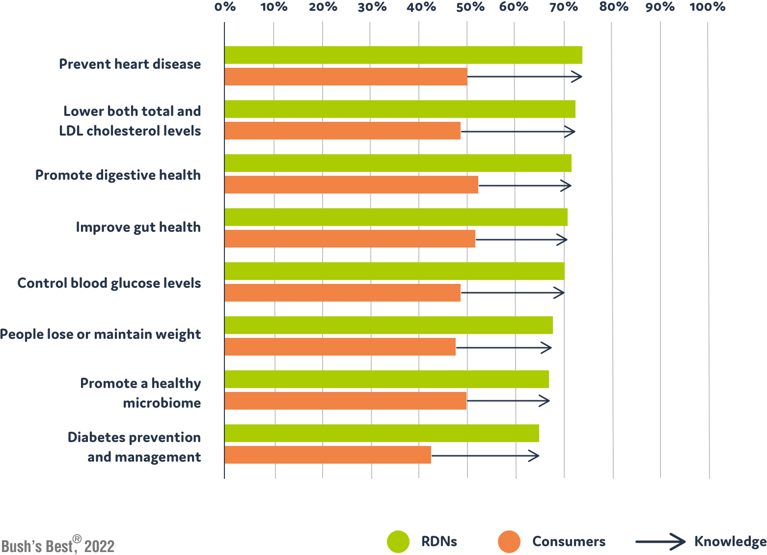 Research conducted in 2022 among RDNs and consumers revealed that RDNs know most of this information. However, consumers do not. Cannedbeans.org needs your help to educate consumers about how simply, nutritiously, and deliciously canned beans can positively impact health. In addition to providing objective reasons why it is important to eat beans more often, Cannedbeans.org is packed with recipes and usage suggestions to add more beans to the diet.